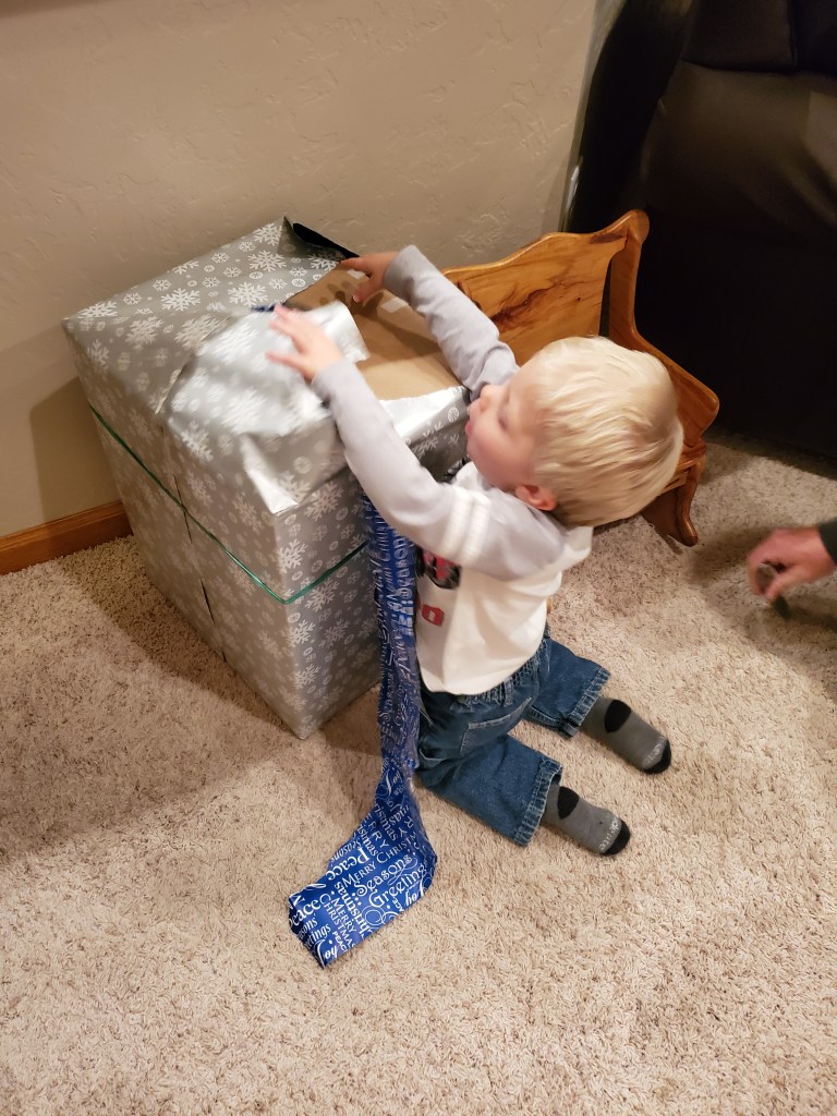 Q hasn’t gotten the ripping the paper/opening presents thing by himself thing yet so he had some help with that, we didn’t even wrap ours. He also looked puzzled why everyone was singing and the extinguishing of the candle did require a little help from his cousin. He was blowing but not really toward the flame. Next year, watch out!