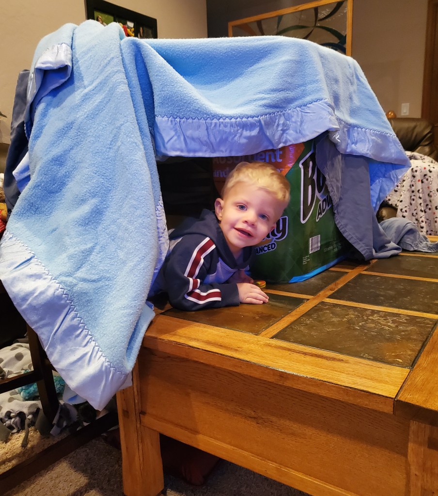 I opened the front that evening, so we still had sides and the top, to watch a Disney movie while gently rocking my baby boy to sleep. My butt was understandably sore, but so worth the experience. Little Q definitely didn’t want to go to bed but hopefully he experienced sweet dreams. My boys are amazing! I am blessed to have family play along with my crazy, old lady ideas!